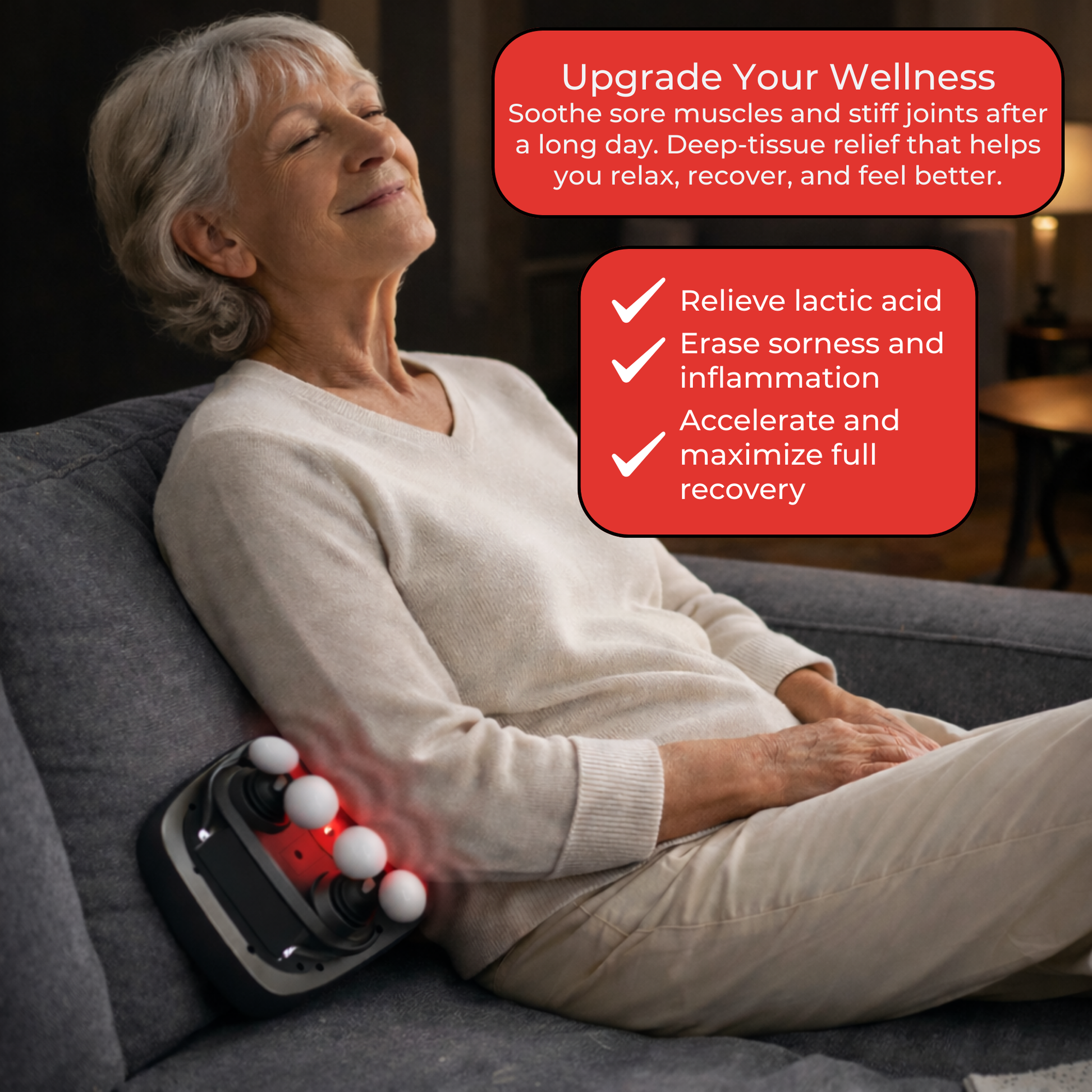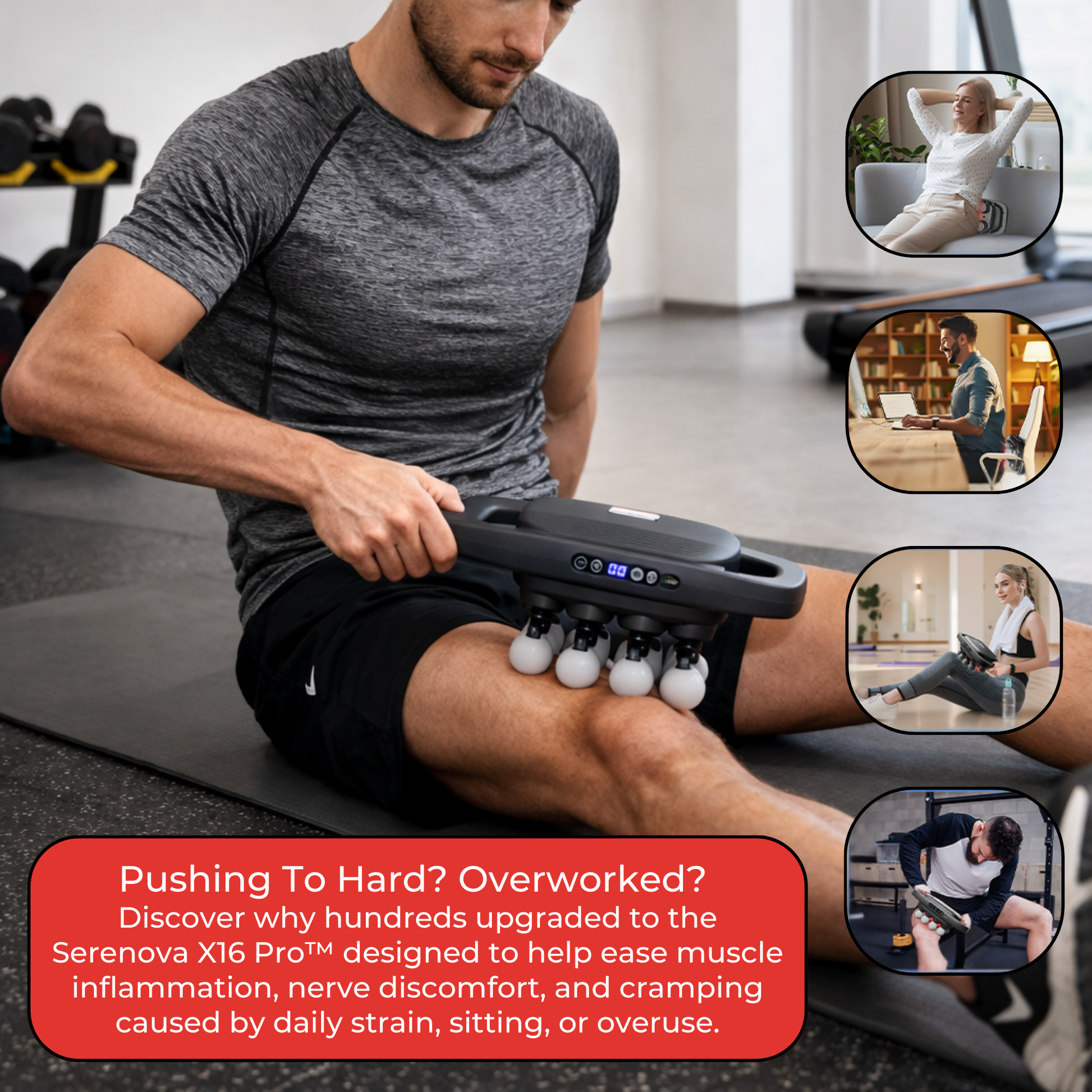 When stretching routines, appointments, or long recovery sessions don’t fit your life, the Serenova X16 Pro™ delivers fast, deep relief in minutes. Its expanded multi-head design covers more muscle at once making it easy to treat your body on your own, or with a partner for those hard to reach areas.